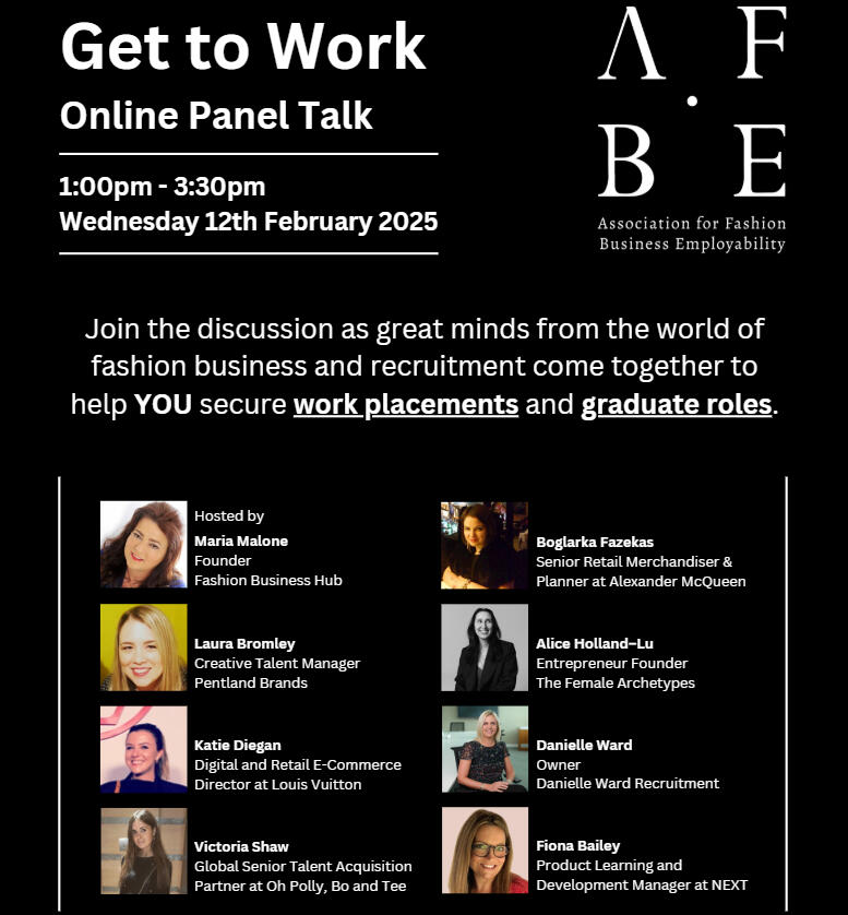 The AFBE is the UK's only employability-focused platform exclusively supporting fashion business students. Our partner universities are the UK's premier producers of fashion business graduate talent, and our events showcase the best of our membership's graduating cohort.By joining the AFBE as an industry partner, your support and involvement will directly benefit graduating fashion business students, via advice, mentorship, or graduate opportunities. Your organisation will also get access to industry-leading graduate talent.For more information on partnership packages, contact one of the team or find us on LinkedIn.